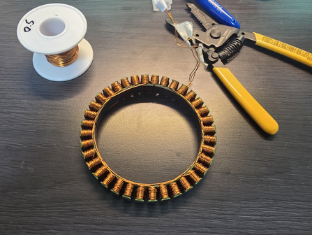 Initially, I planned to design a coil-winding machine to streamline the process of winding coils onto the stator. However, as the development of this machine faced continuous delays, I ended up winding the coils manually. The image above shows the coil-winding machine I had designed.